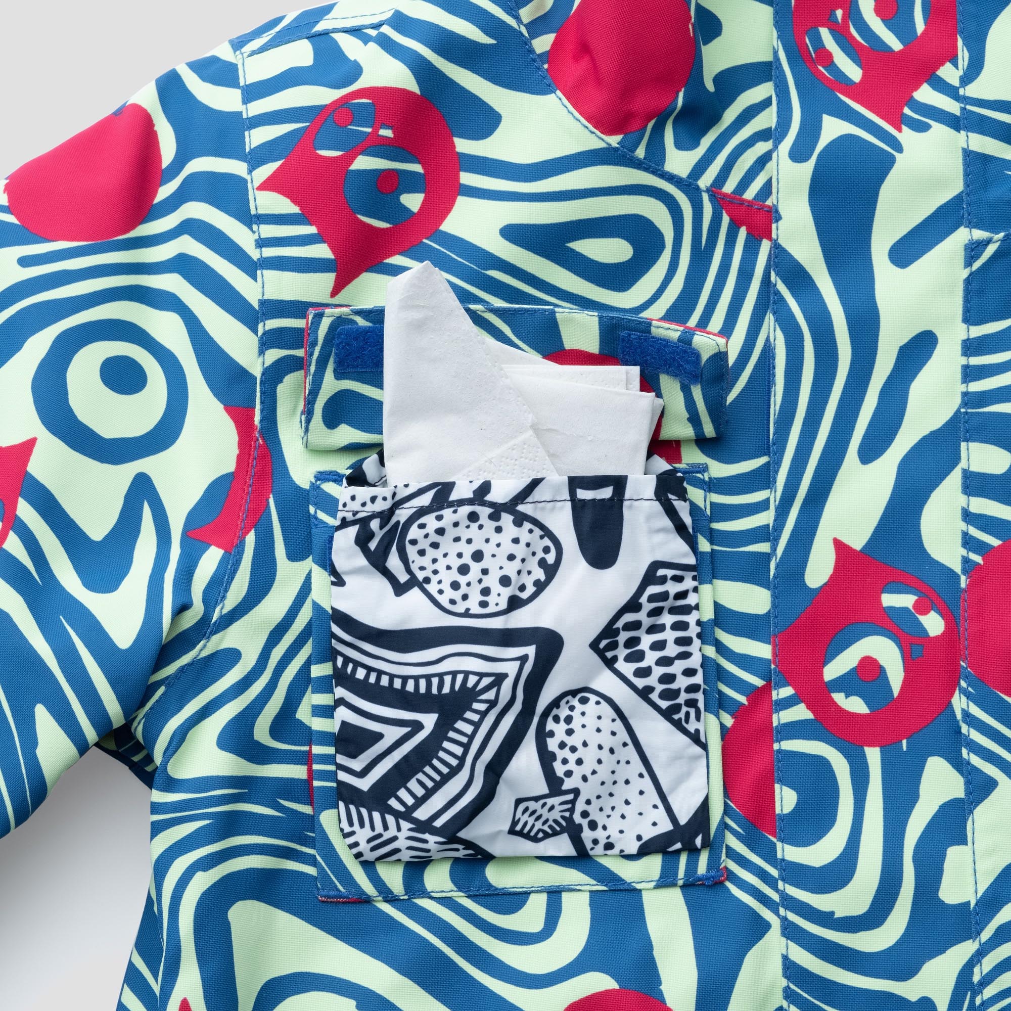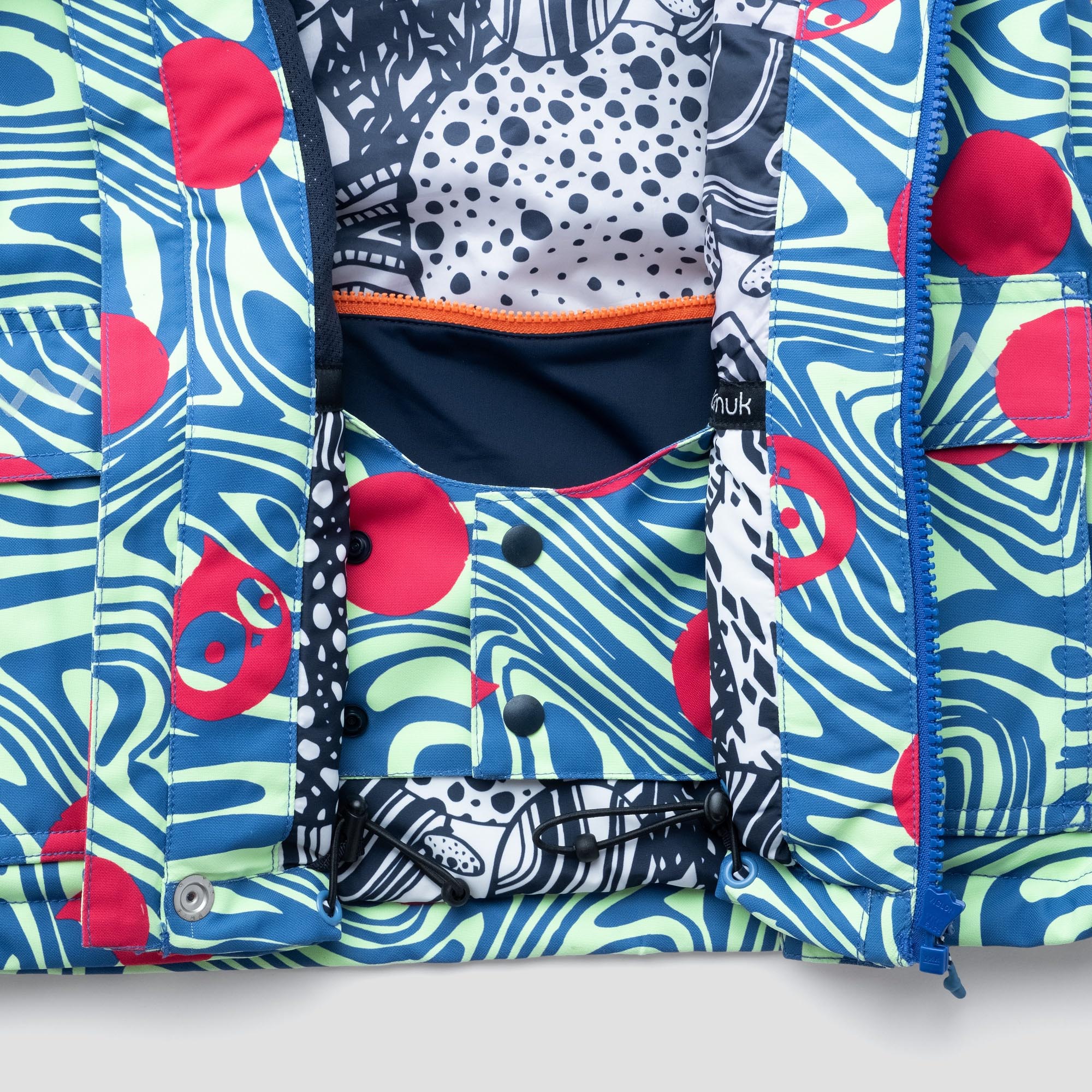 Doch die Mission wäre nicht von namuk, wenn das alles wäre: ein versteckter Schlüsselhalter und eine Abfalltasche gehören genauso zu den Eigenschaften wie das Overall Connection System, das dafür sorgt, dass man die Jacke mit jeder Skihose verbinden kann. Alle, die dafür zu gross sind, können einem fast leid tun.